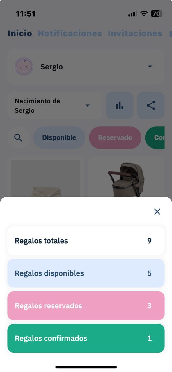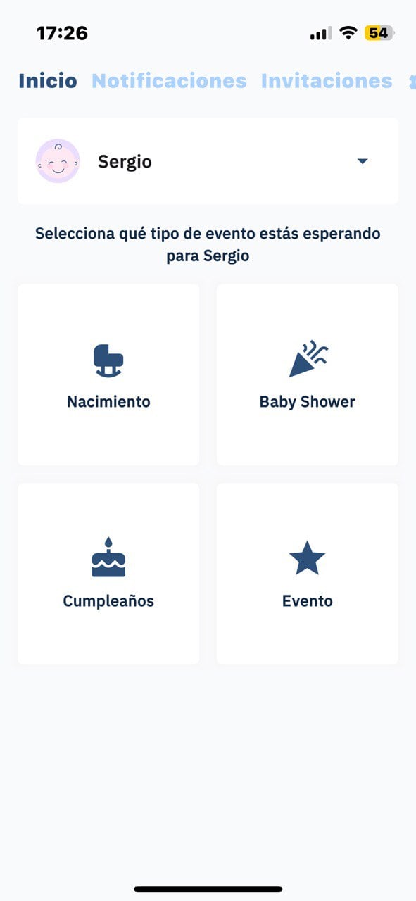Asocia tu evento (nacimiento, baby shower o cumpleaños) y elige un nombre para tu bebé.